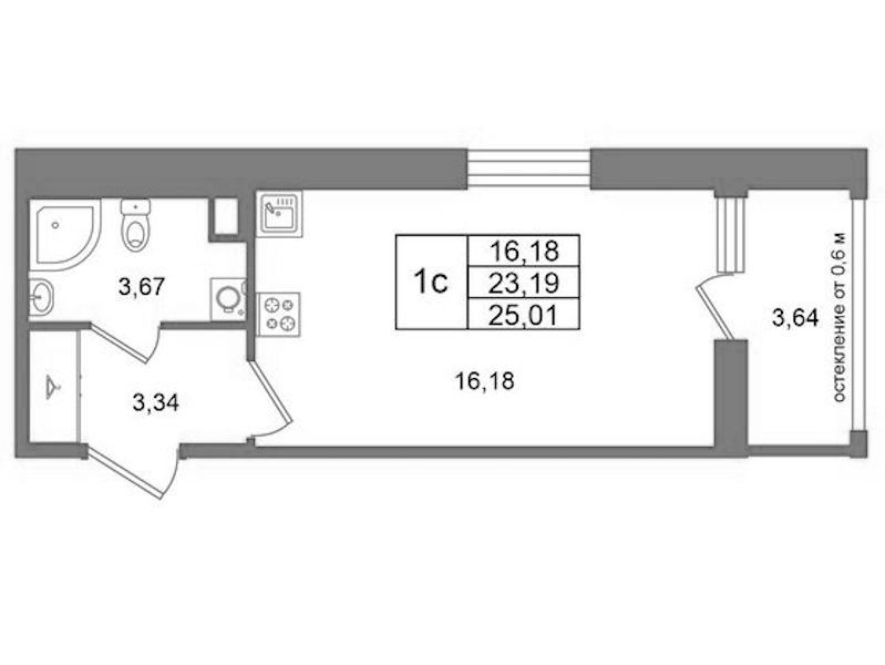 - Площадь23,19 м2