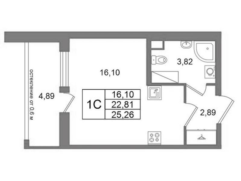 Квартира-студия на 14-ом этаже 22,81 кв.м