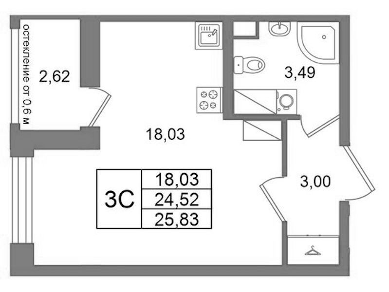 - Площадь24,52 м2