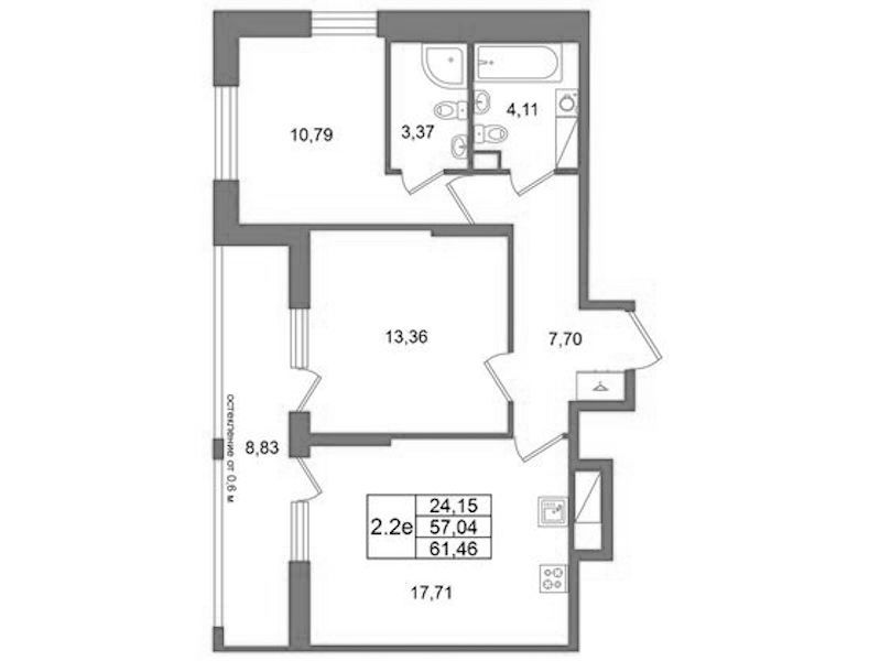 - Площадь57,04 м2