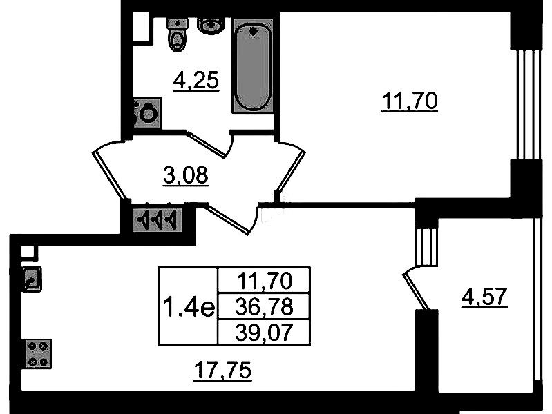 - Площадь кухни17,75 м2