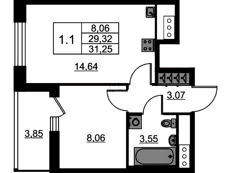 - Площадь29,32 м2