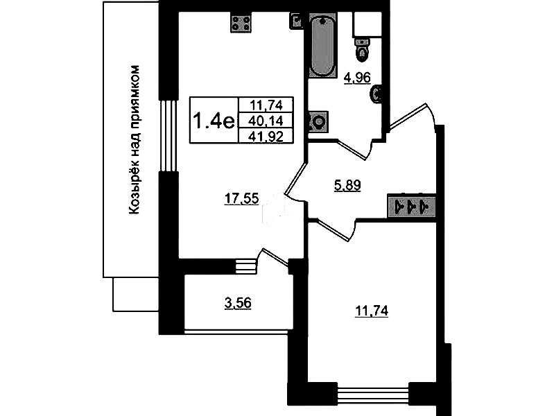 - Площадь40,14 м2