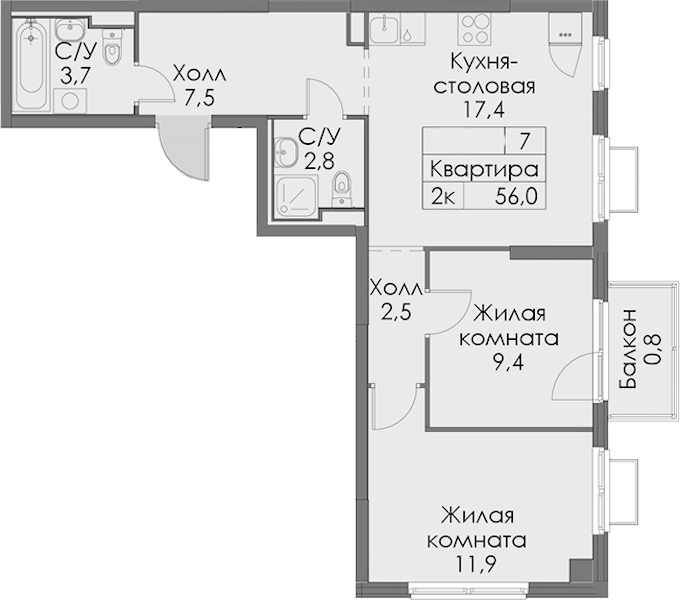 - Площадь56 м2