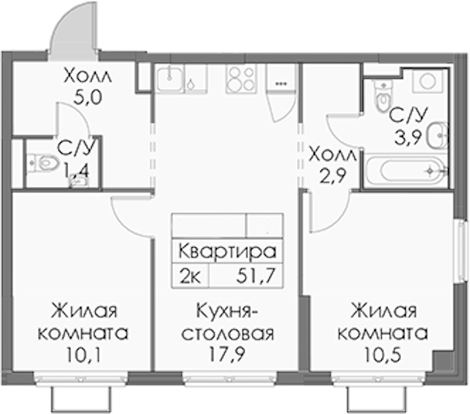 - Площадь51,7 м2