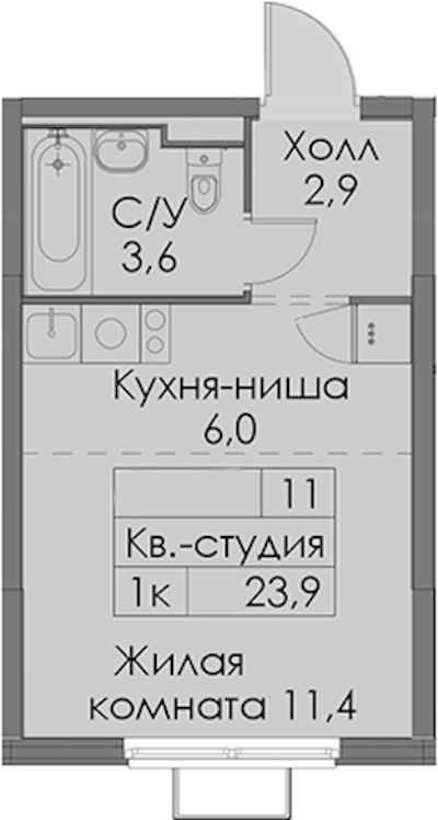 Квартира-студия на 4-ом этаже 23,9 кв.м
