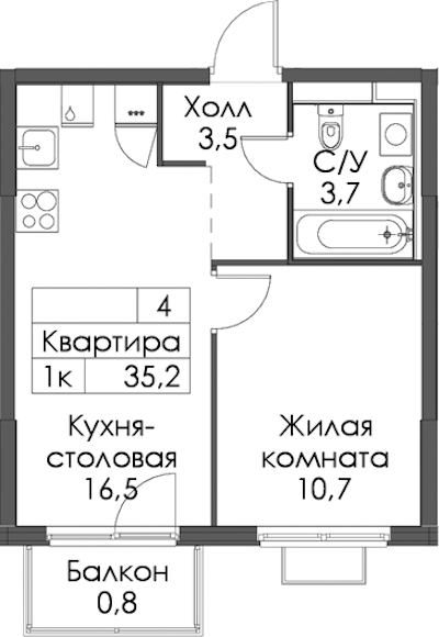 - Площадь35,2 м2