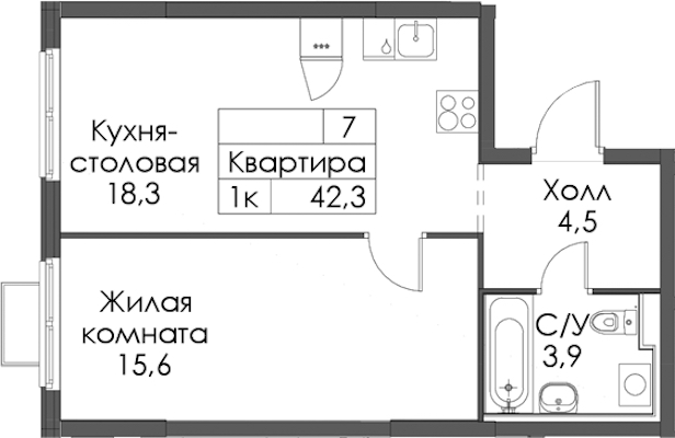- Площадь42,3 м2