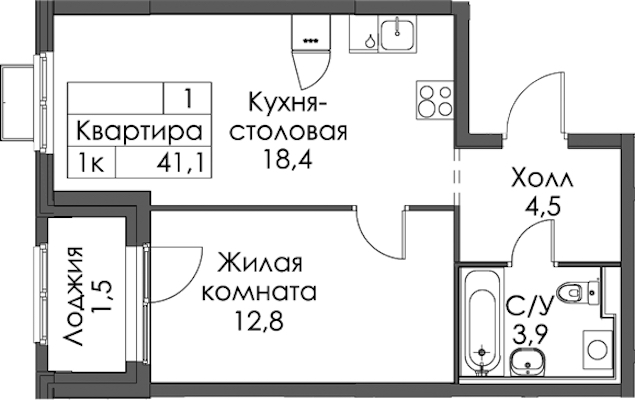 • Площадь41,1 м2