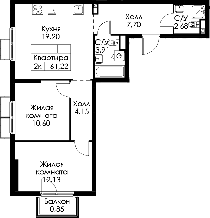 - Площадь61,22 м2