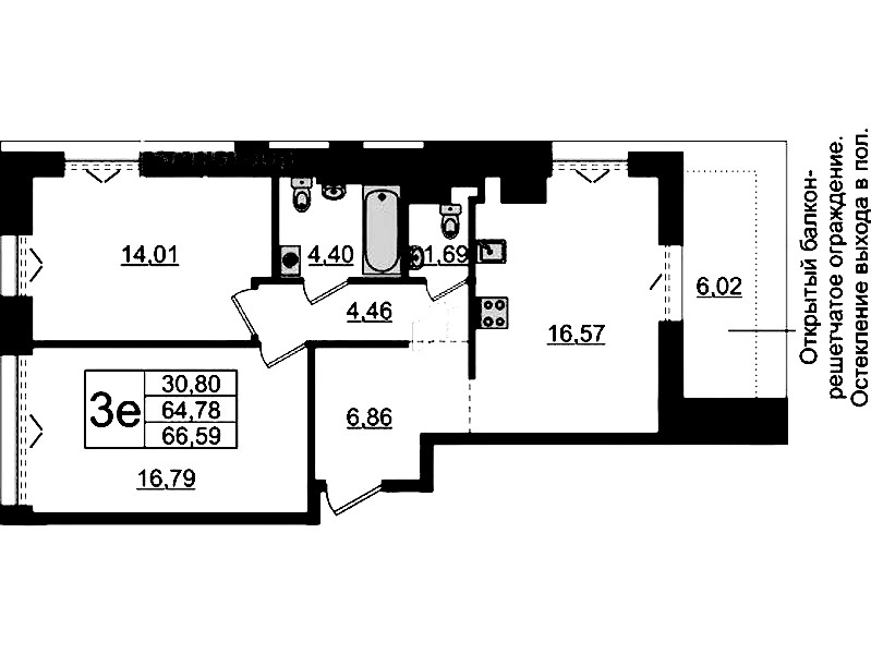 Двухкомнатная квартира на 7-ом этаже 64,78 кв.м