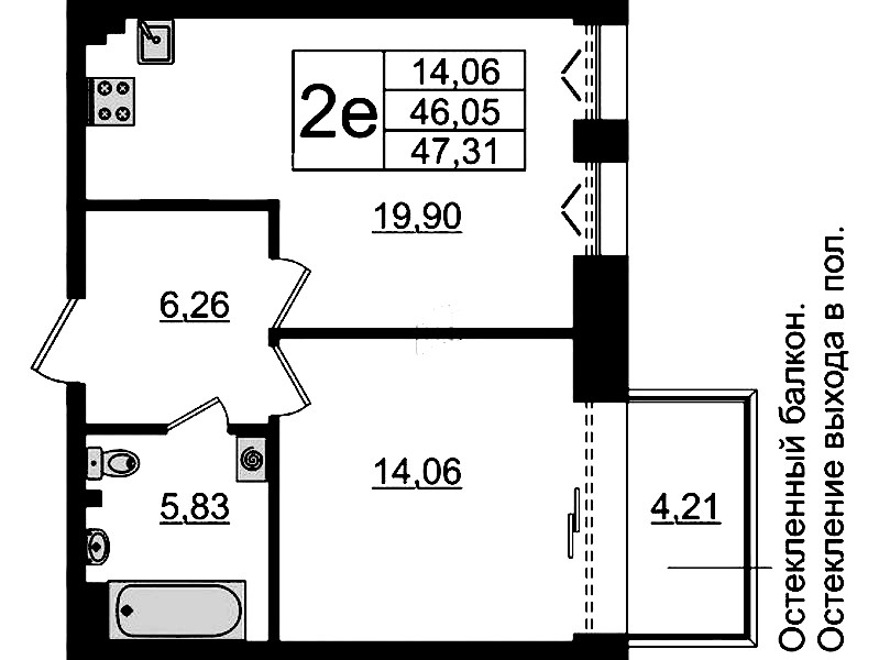 • Площадь46,05 м2