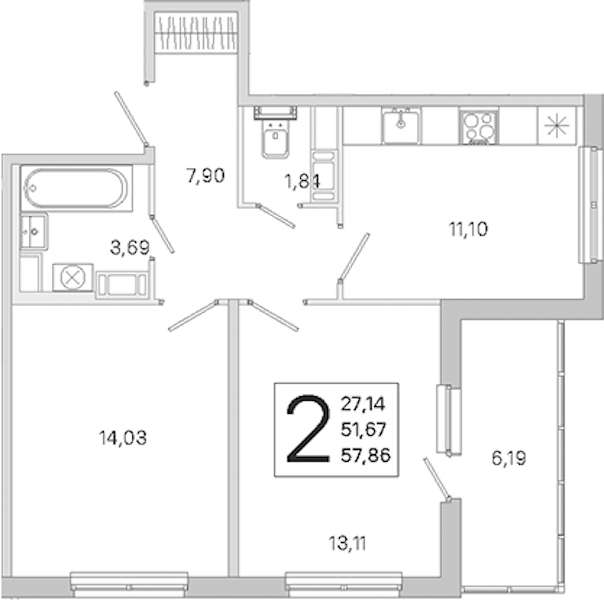 - Площадь51,67 м2