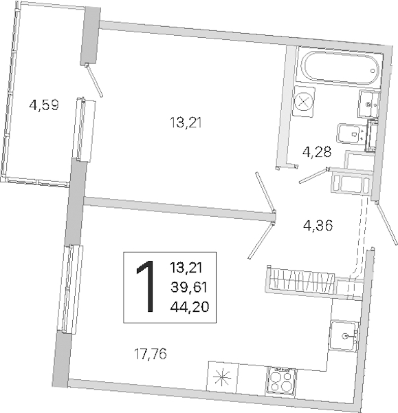 - Площадь39,61 м2