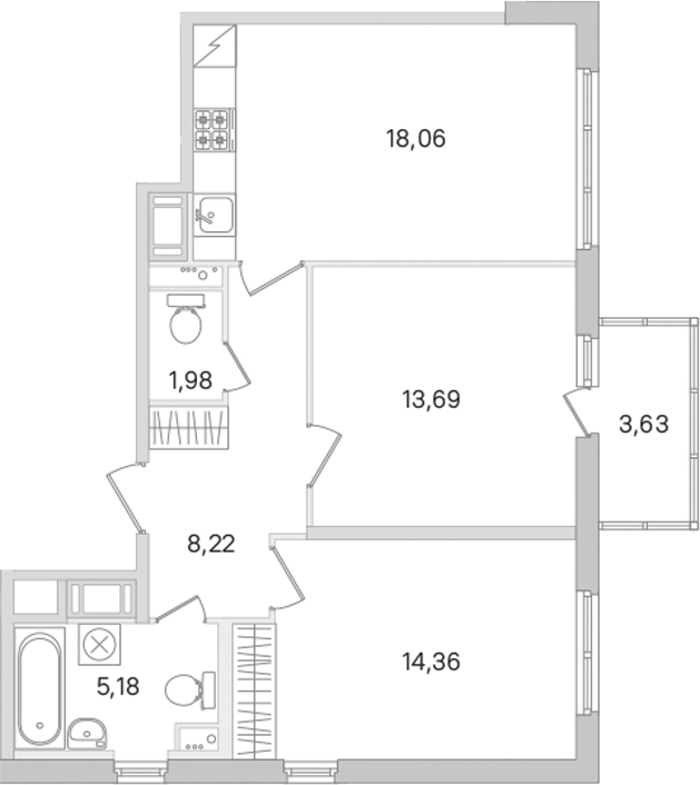 - Площадь кухни18,06 м2