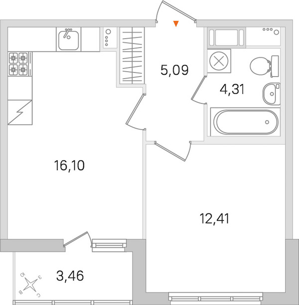 Однокомнатная квартира на 2-ом этаже 37,91 кв.м