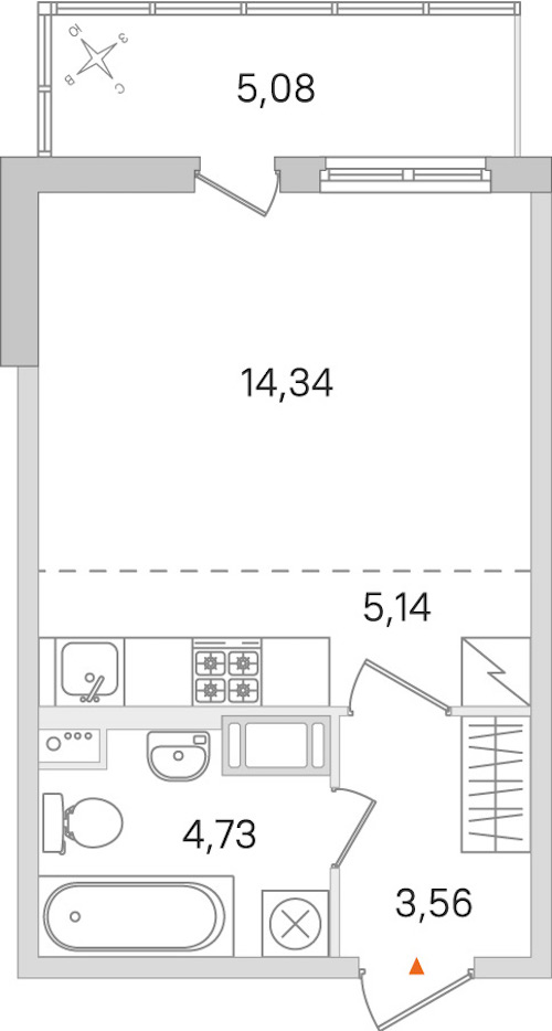 Квартира-студия на 4-ом этаже 27,77 кв.м