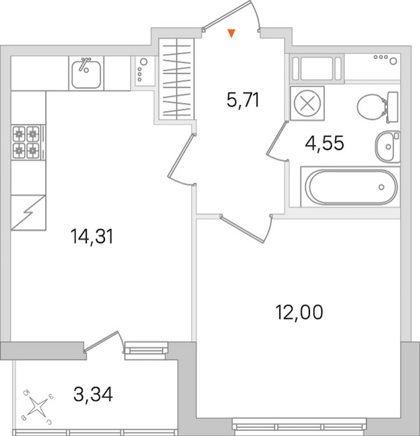 - Площадь кухни14,31 м2