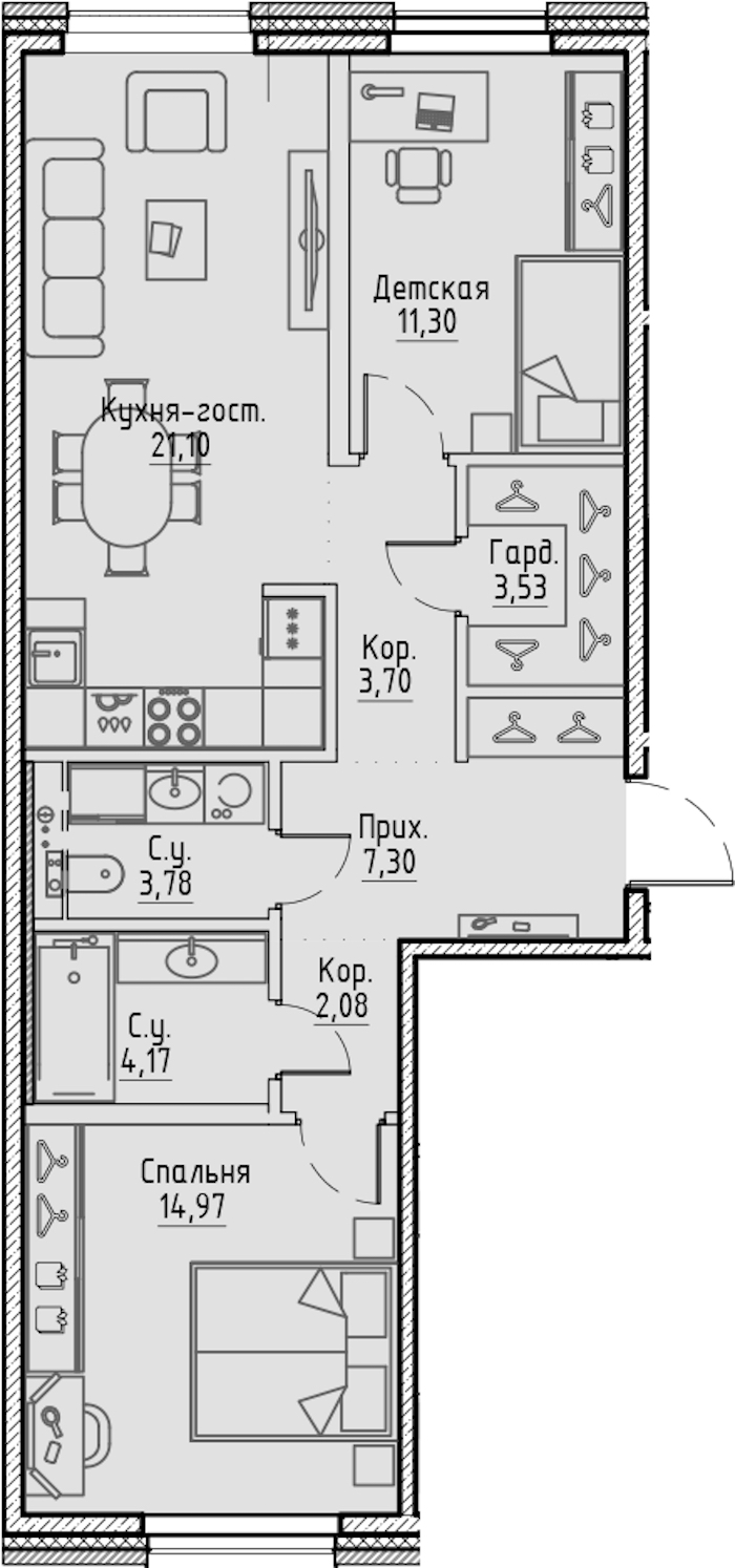 • Площадь кухни21,1 м2