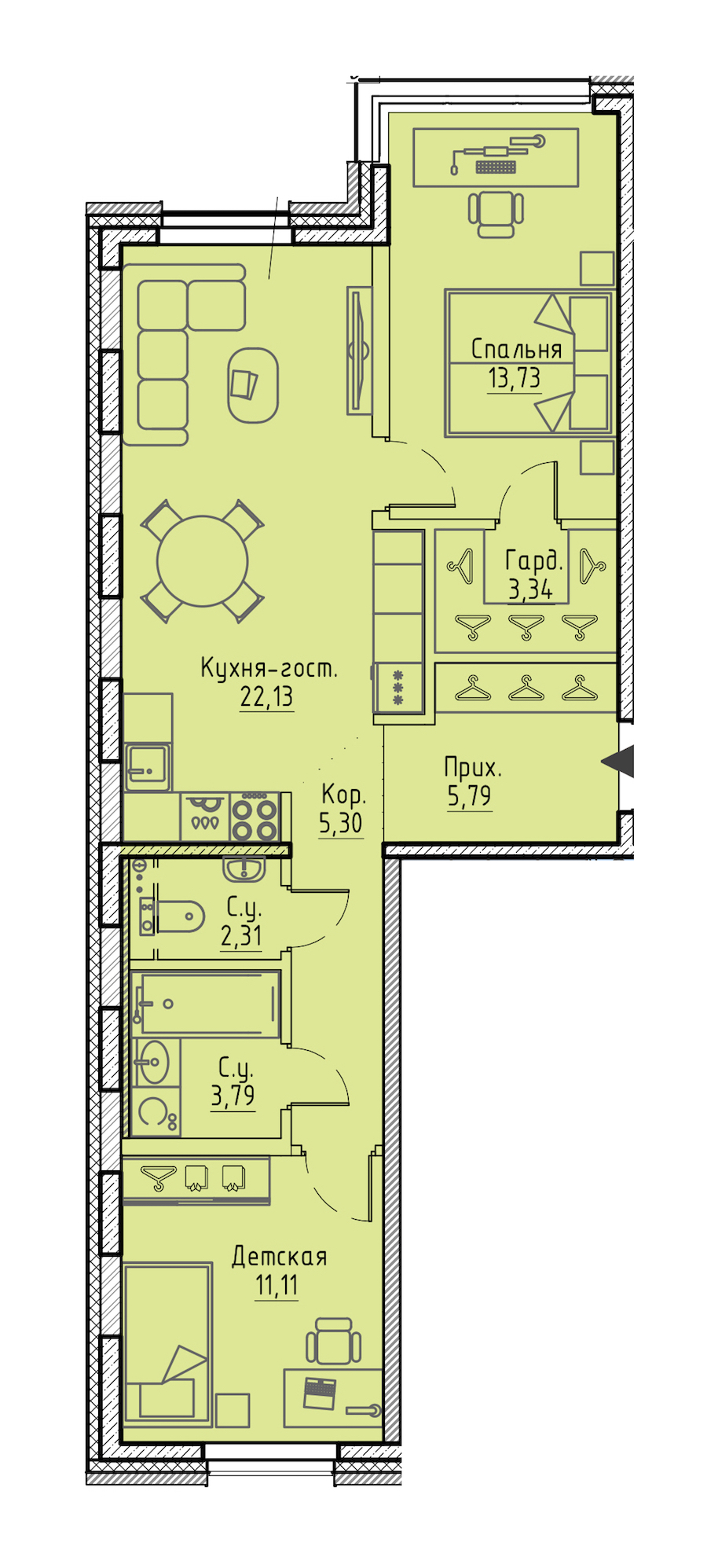 - Площадь кухни22,13 м2
