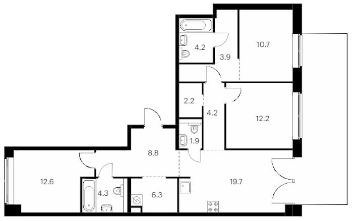 • Площадь кухни19,7 м2