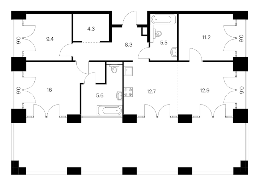 Трёхкомнатная квартира на 9-ом этаже 101,3 кв.м
