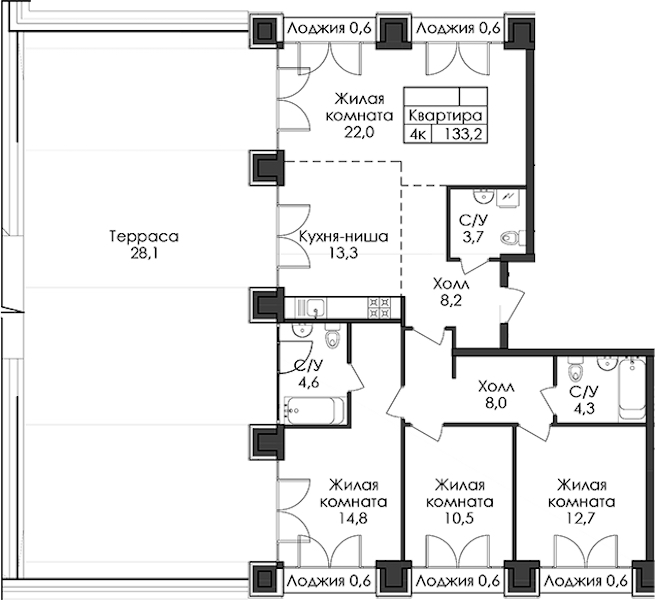 • Площадь133,2 м2