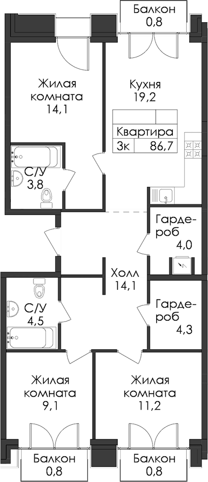 Выше представлены не все варианты квартир, а только часть популярных планировок. Введите данные и получите под ваш запрос планировки, цены, виды из окон и полную информацию по всем подходящим вариантам. 1/5