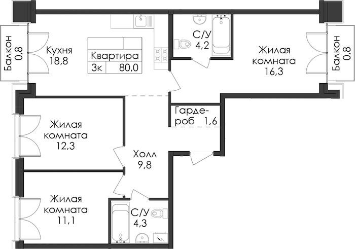 Выше представлены не все варианты квартир, а только часть популярных планировок. Введите данные и получите под ваш запрос планировки, цены, виды из окон и полную информацию по всем подходящим вариантам. 1/5