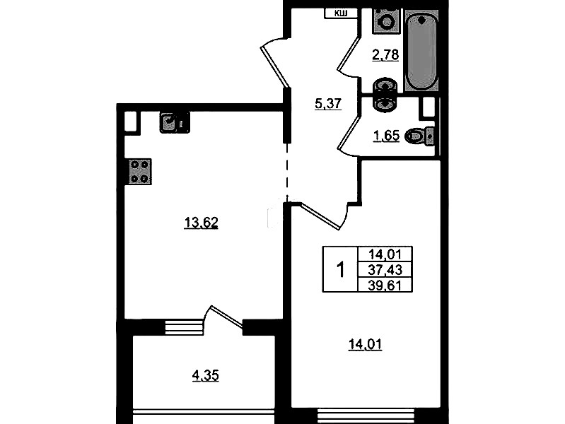 • Площадь39,61 м2