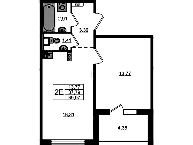 Однокомнатная квартира на 3-ем этаже 39,97 кв.м