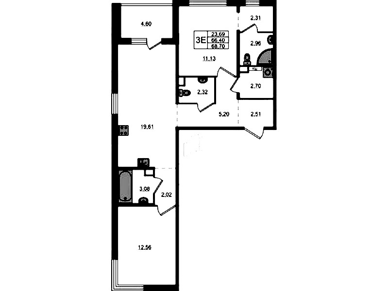 Двухкомнатная квартира на 4-ом этаже 68,7 кв.м