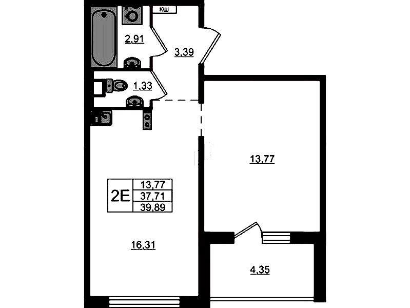 • Площадь39,89 м2