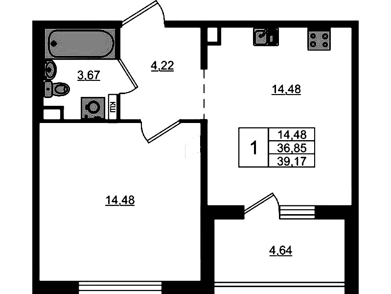 - Площадь кухни14,48 м2