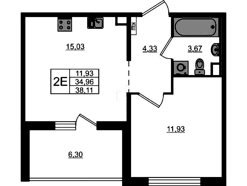 • Площадь38,11 м2