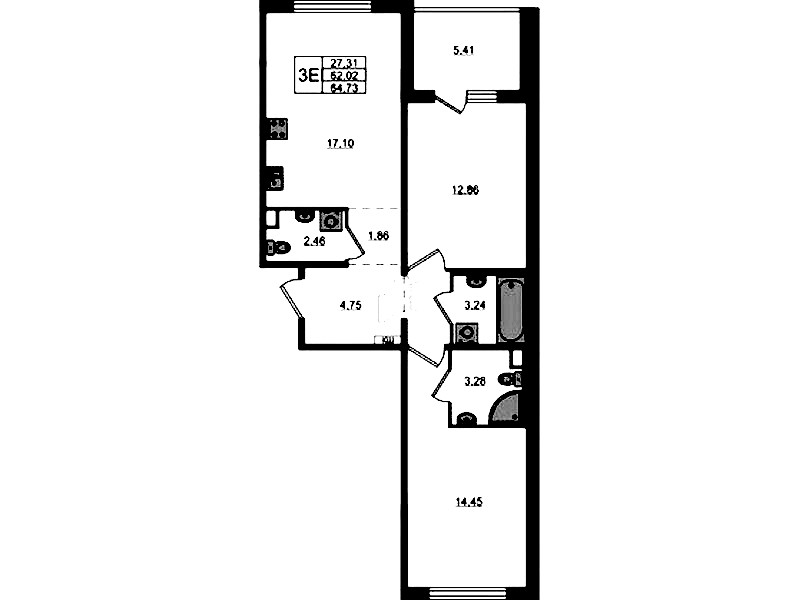 - Площадь64,73 м2