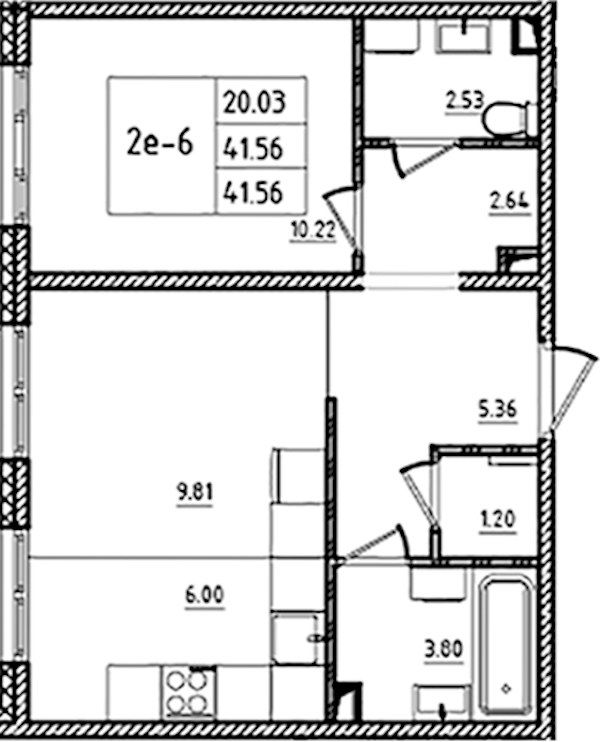 Однокомнатная квартира на 1-ом этаже 41,56 кв.м