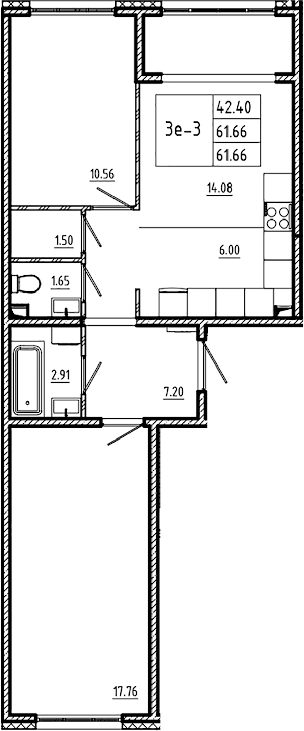• Площадь61,66 м2