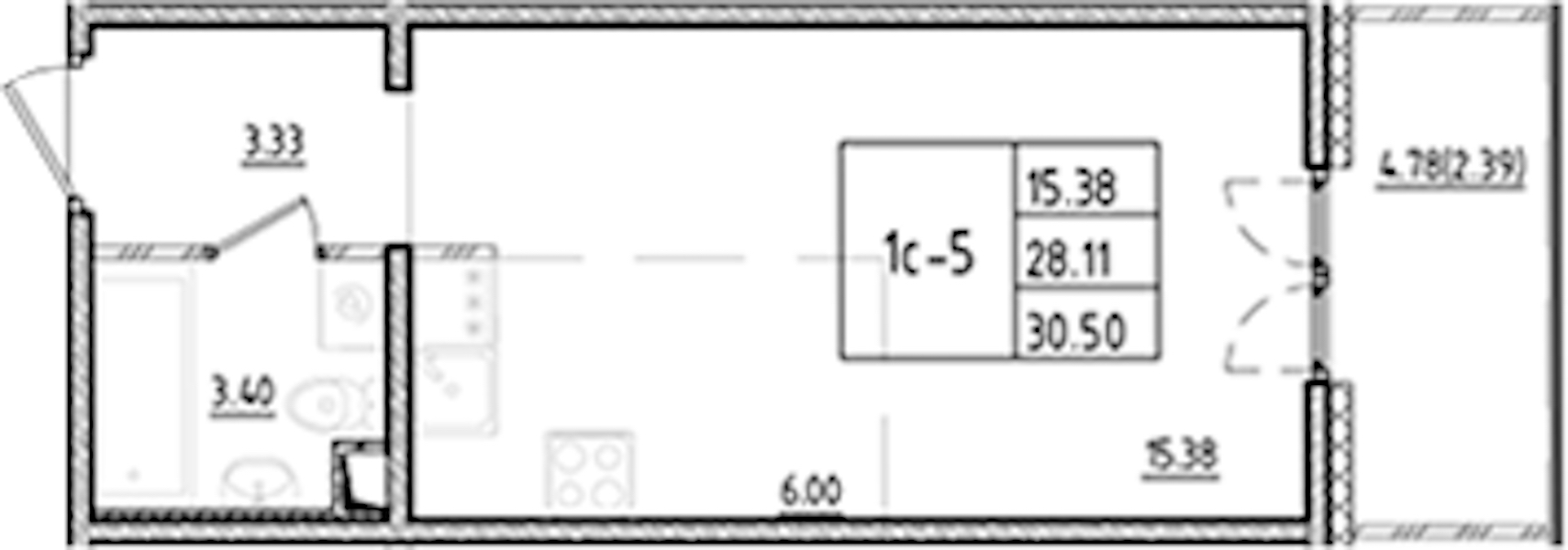 • Площадь30,5 м2
