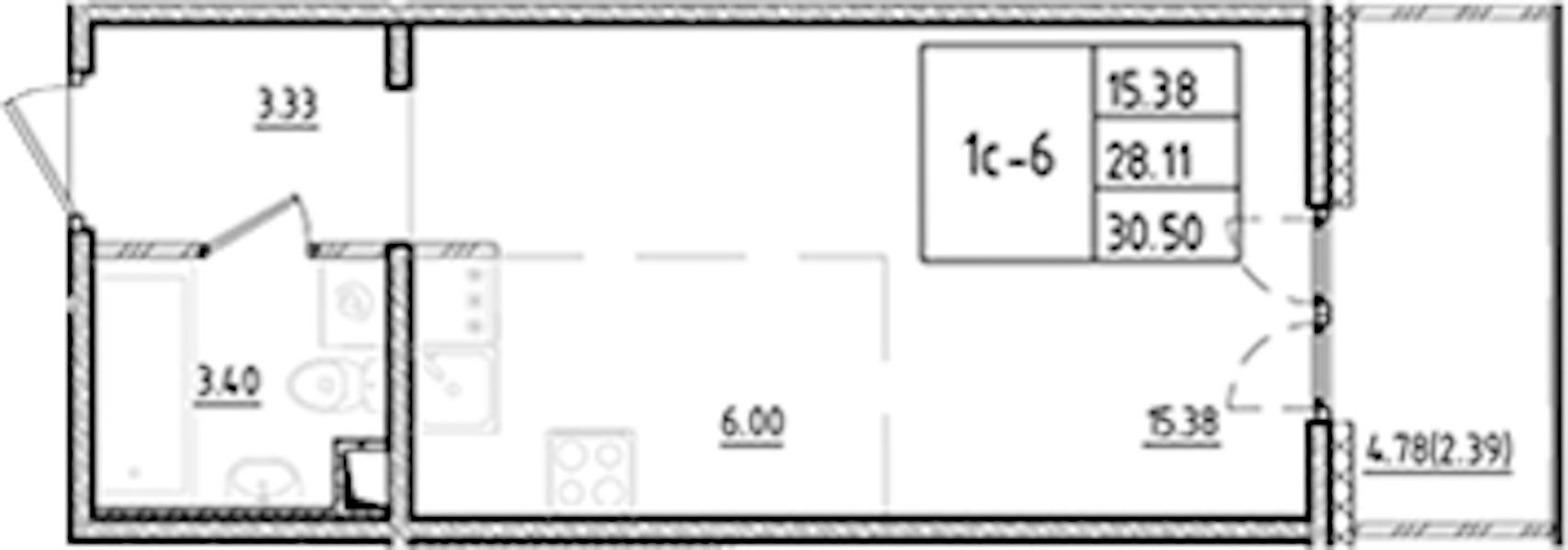 • Площадь30,5 м2
