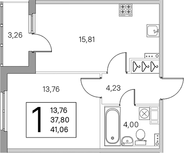 • Площадь кухни15,81 м2