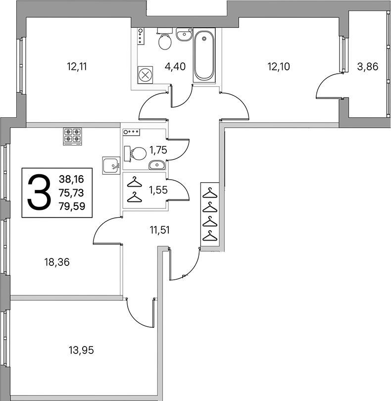 • Площадь кухни18,36 м2