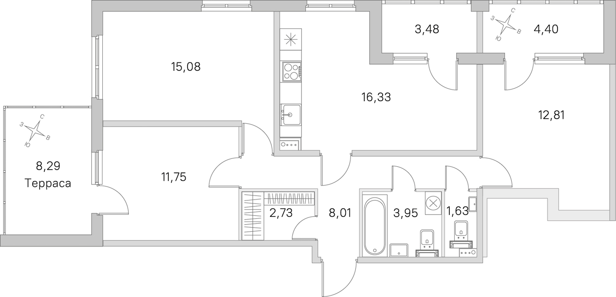 • Площадь кухни16,33 м2