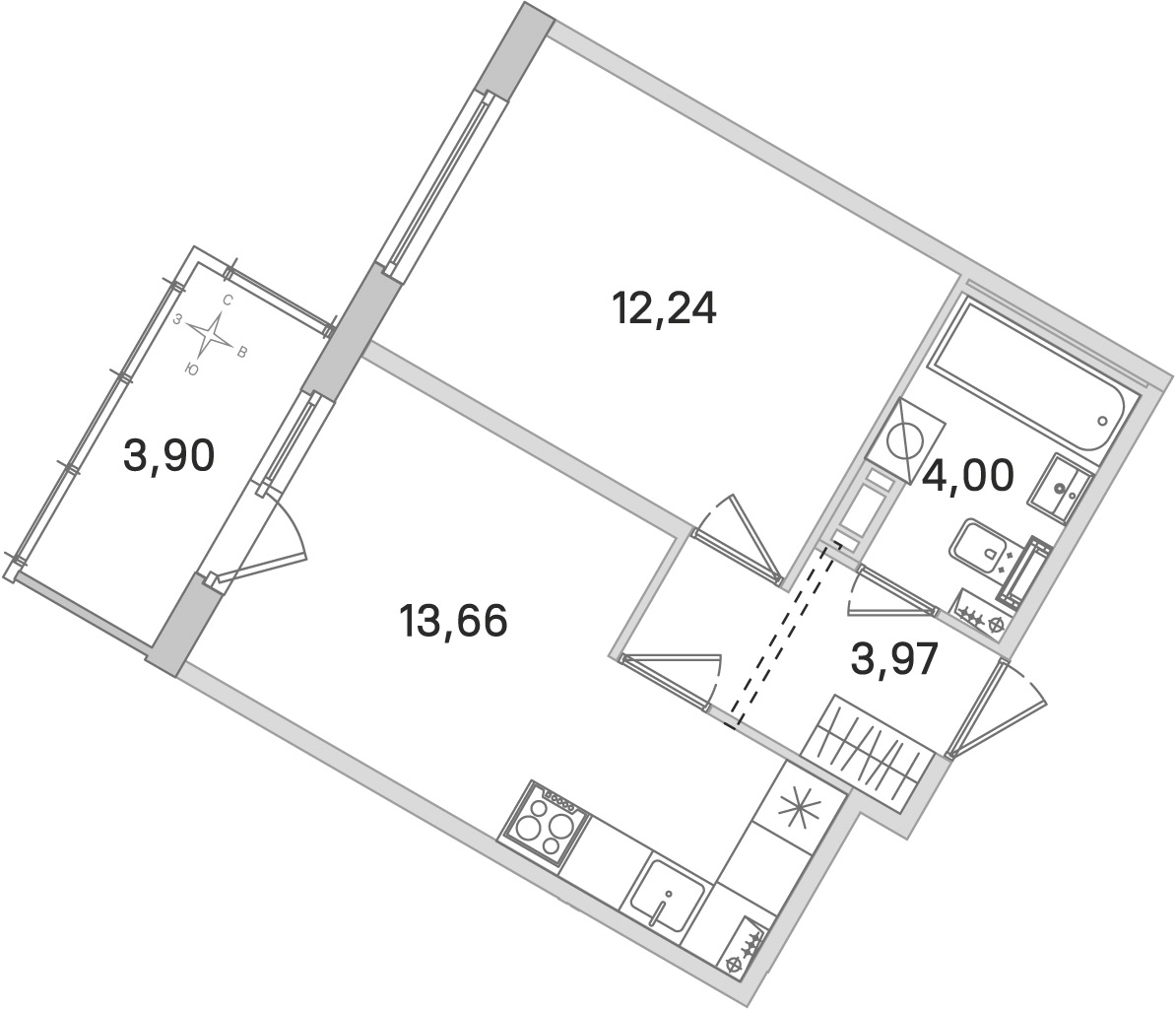 Однокомнатная квартира на 3-ем этаже 33,87 кв.м