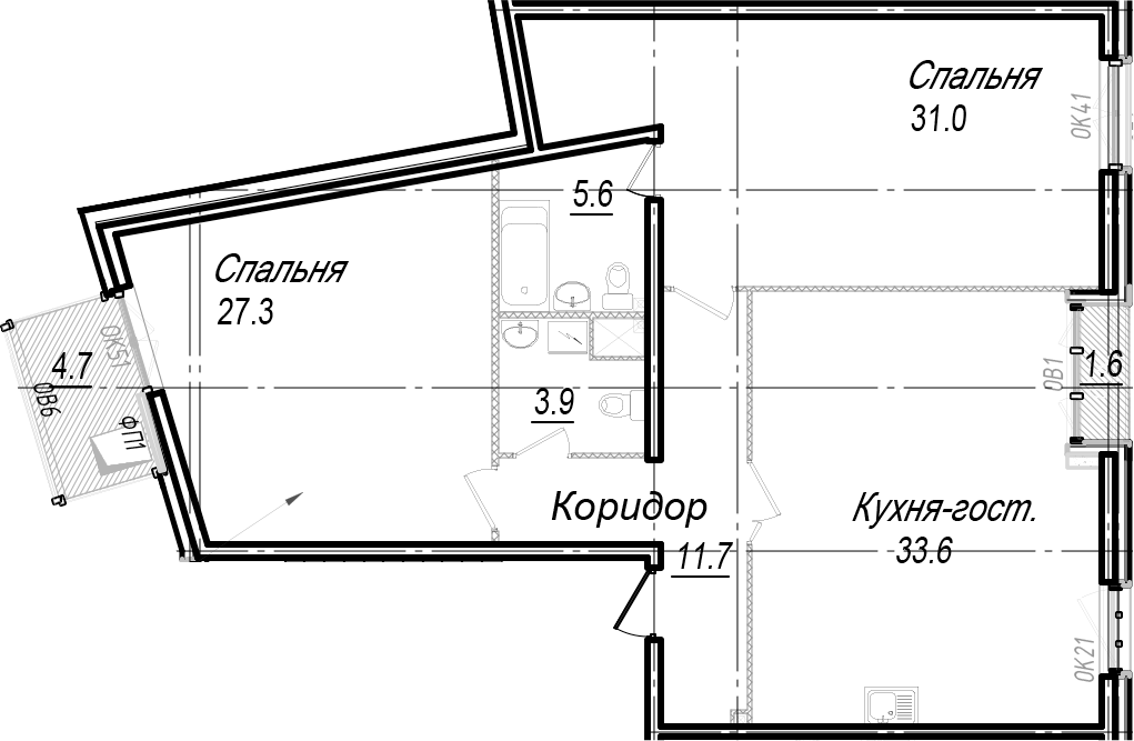 Двухкомнатная квартира на 4-ом этаже 115,2 кв.м