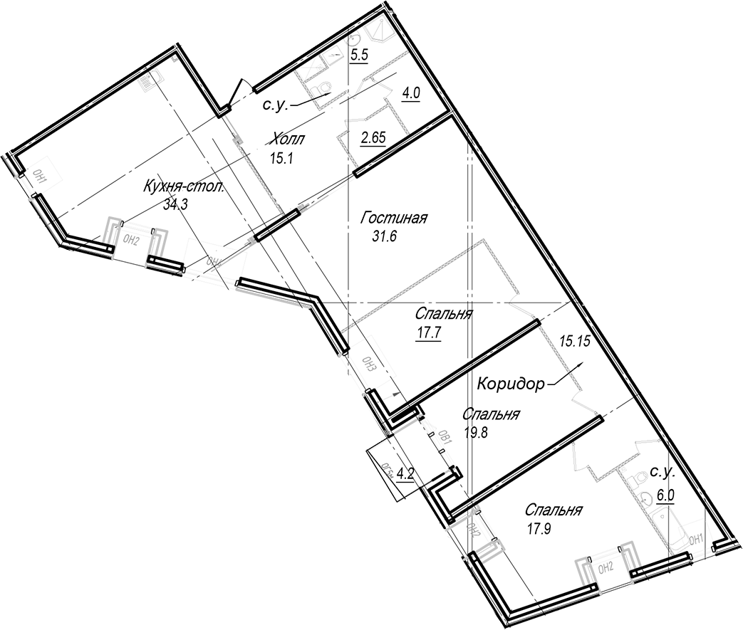 - Площадь кухни34,3 м2