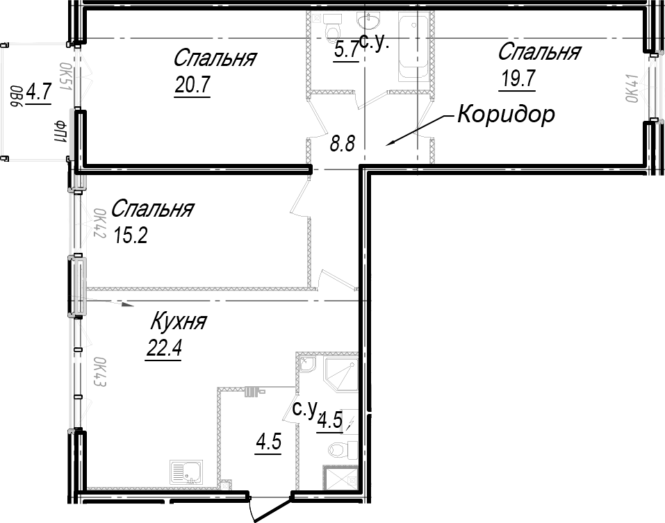 • Площадь кухни22,4 м2