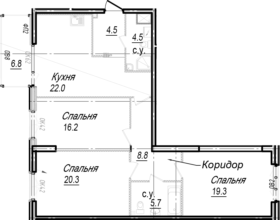Трёхкомнатная квартира на 5-ом этаже 102,7 кв.м