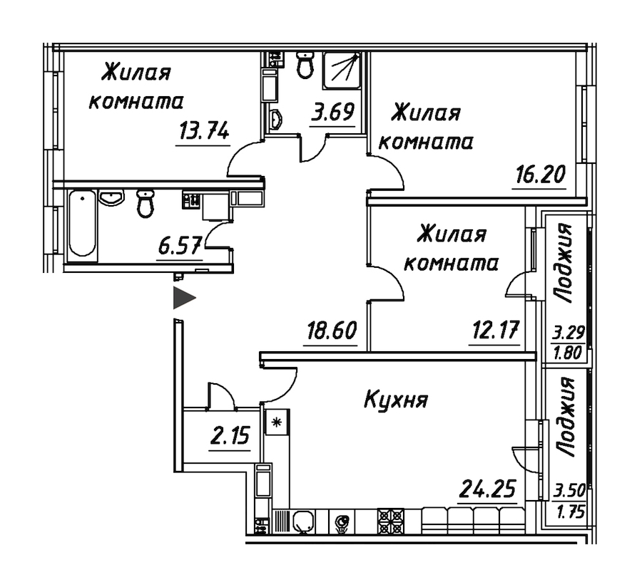 - Площадь кухни24,25 м2