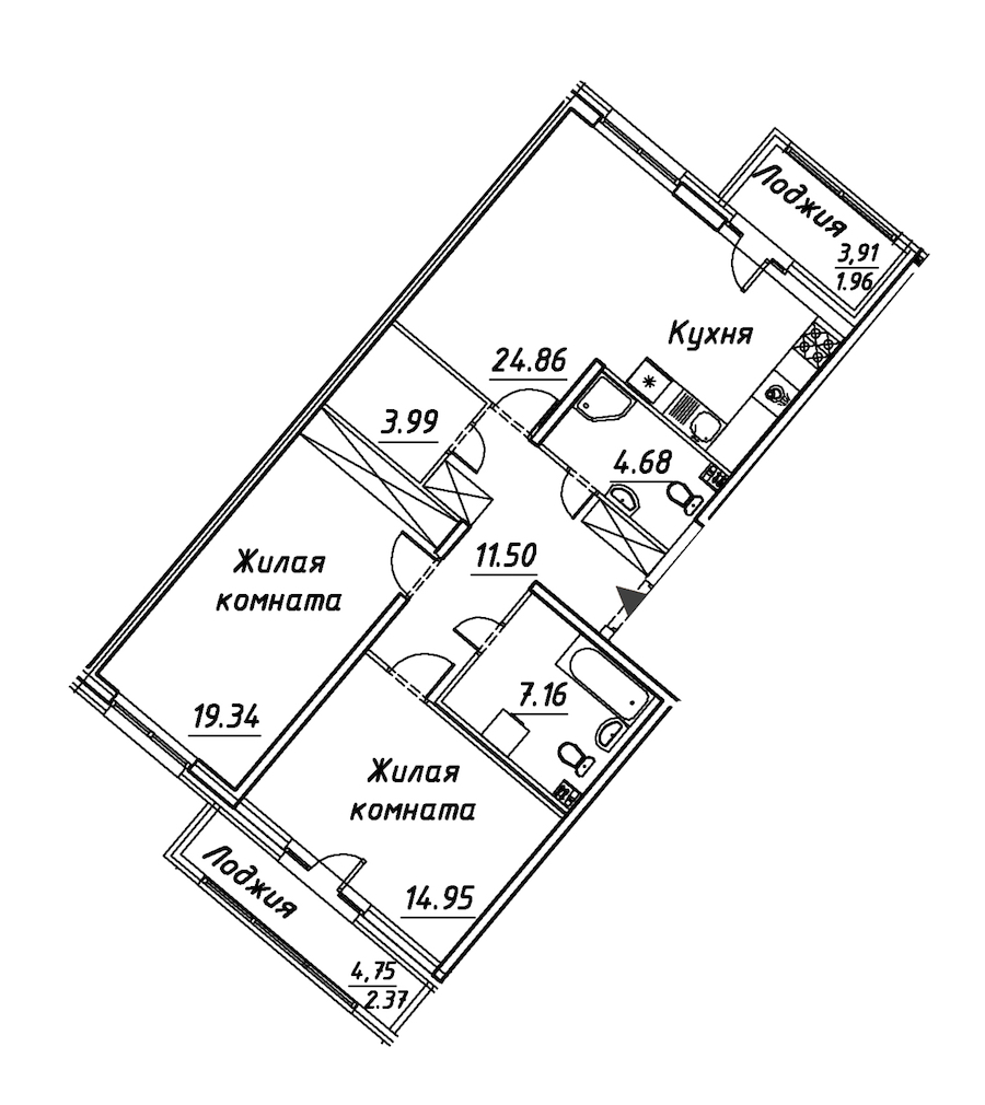 • Площадь кухни24,86 м2